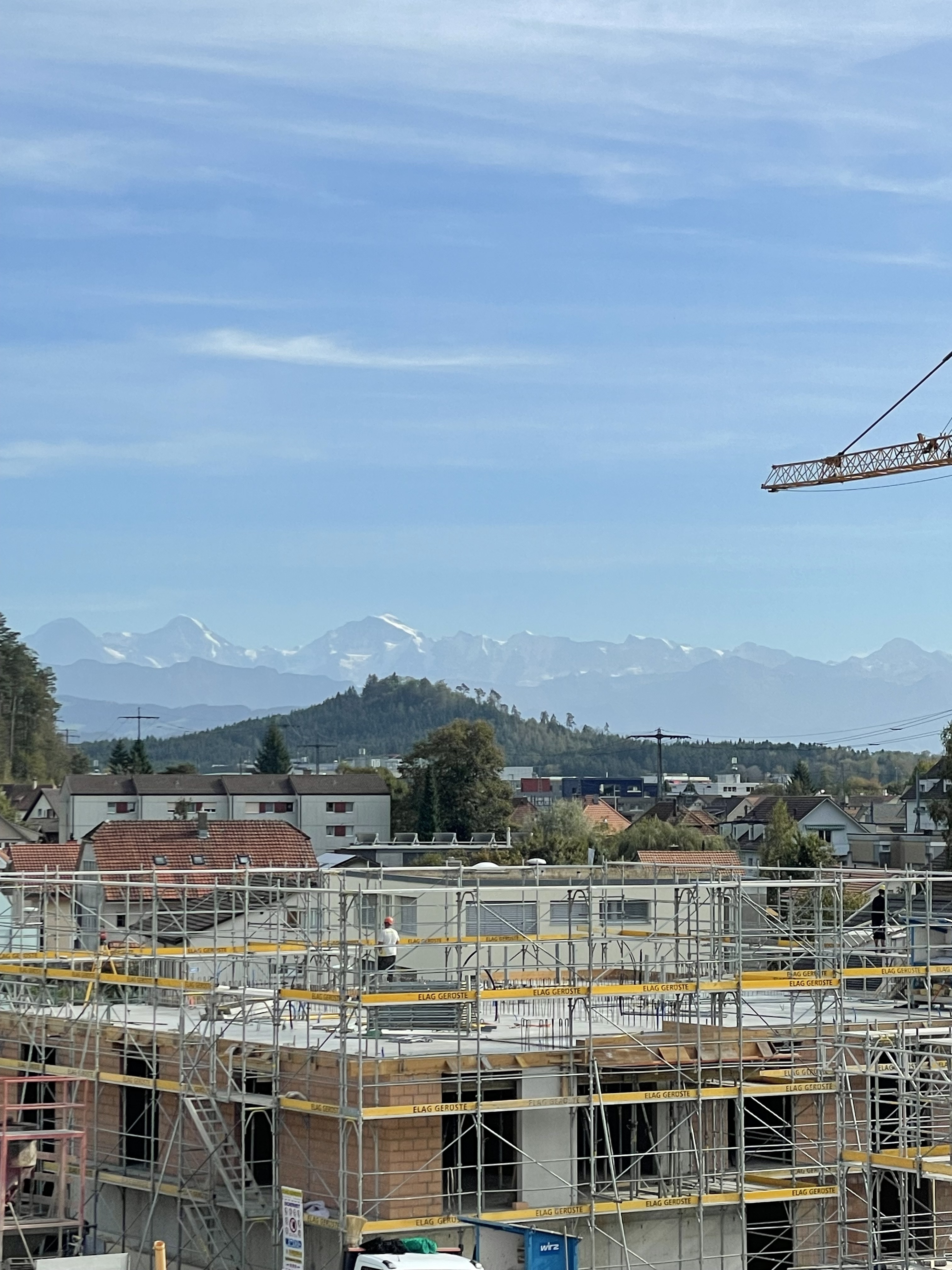 Viel nachhaltiges Holz, ein angenehmes Raumgefühl und alles in der Nähe, was man fürs tägliche Leben braucht – das bietet die neue Siedlung Alpenstrasse in Gümligen. An leichter Hanglage mit schöner Aussicht auf die Berner Alpen bieten die zeitlos ausgebauten Mietwohnungen ein grosszügiges Raumangebot mit viel Licht und herrlichen Loggien.